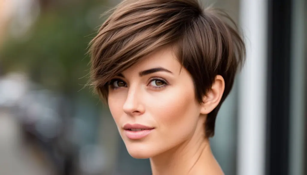 Короткие стрижки часто пугают обладательниц тонких волос. И зря. В варианте пикси с акцентом на макушку объём достигается за счёт укороченных прядей сверху, а удлинённая чёлка добавляет гибкости.