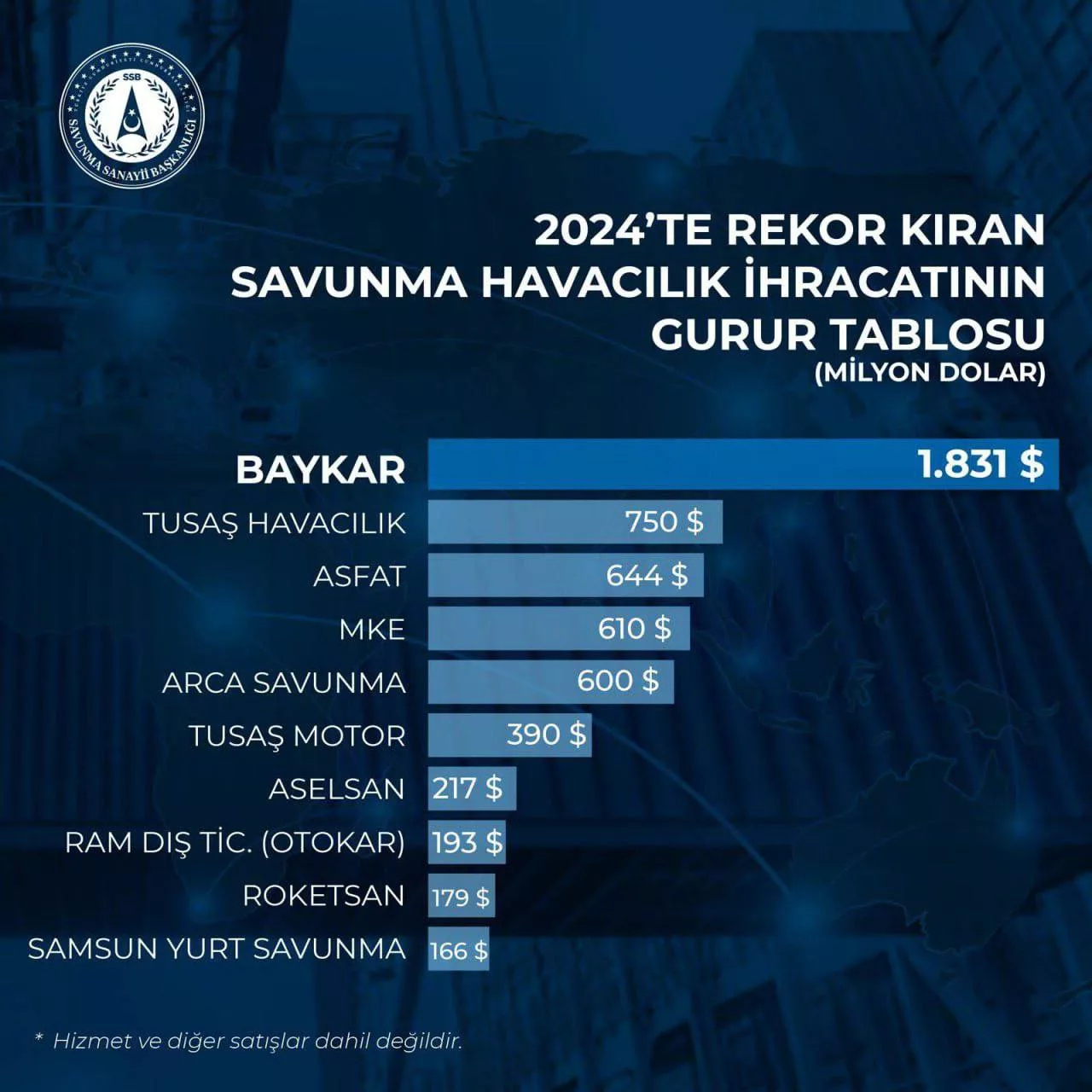 Общий объем экспорта оборонной и аэрокосмической промышленности в 2024 году: 7,154 млрд долл.