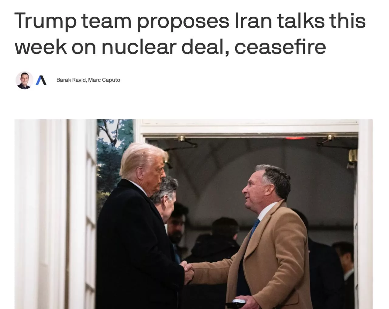 Портал также сообщает, что Белый дом уже обсуждает с Тегераном возможность проведения на этой неделе встречи спецпосланника президента США Стива Уиткоффа и главы МИД Ирана Аббаса Аракчи.