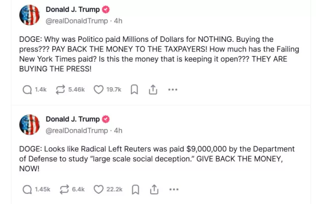 Правительство США тратило миллионы долларов из бюджета на подписки и контракты с крупными СМИ. Подписка федеральных структур, например, на Politico обходилась в $8 млн в год.