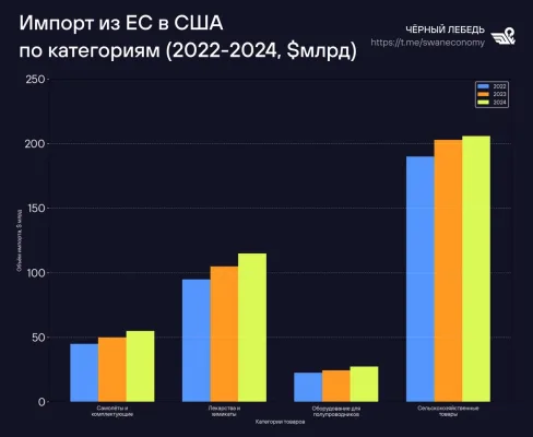 ЕС согласился инвестировать 600 млрд долларов в США и купить энергоресурсы на 750 млрд долларов, а также военную технику на несколько сотен млрд долларов — точная сумма общественности не раскрывается.