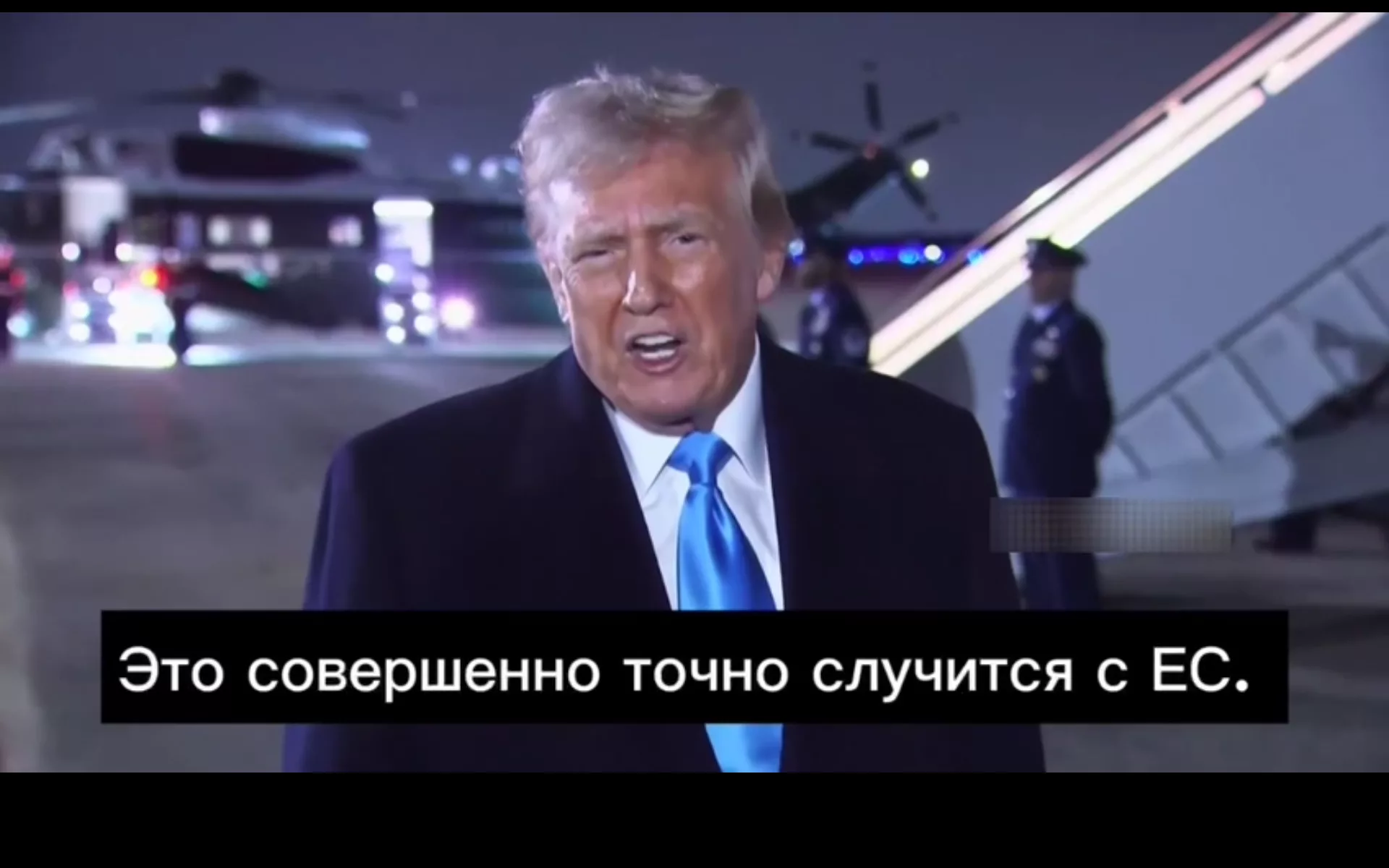 «Это совершенно точно случится с ЕС. Они слишком много от нас получили. У нас дефицит бюджета в 300 миллиардов долларов. Я не назову точную дату, но это произойдет очень скоро».