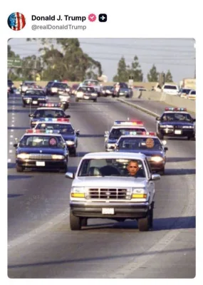 Президент США Дональд Трамп на своей странице в соцсети Truth Social опубликовал мем с изображением полицейской погони, во время которой он и вице-президент Джей Ди Вэнс преследуют бывшего президента Барака Обаму.