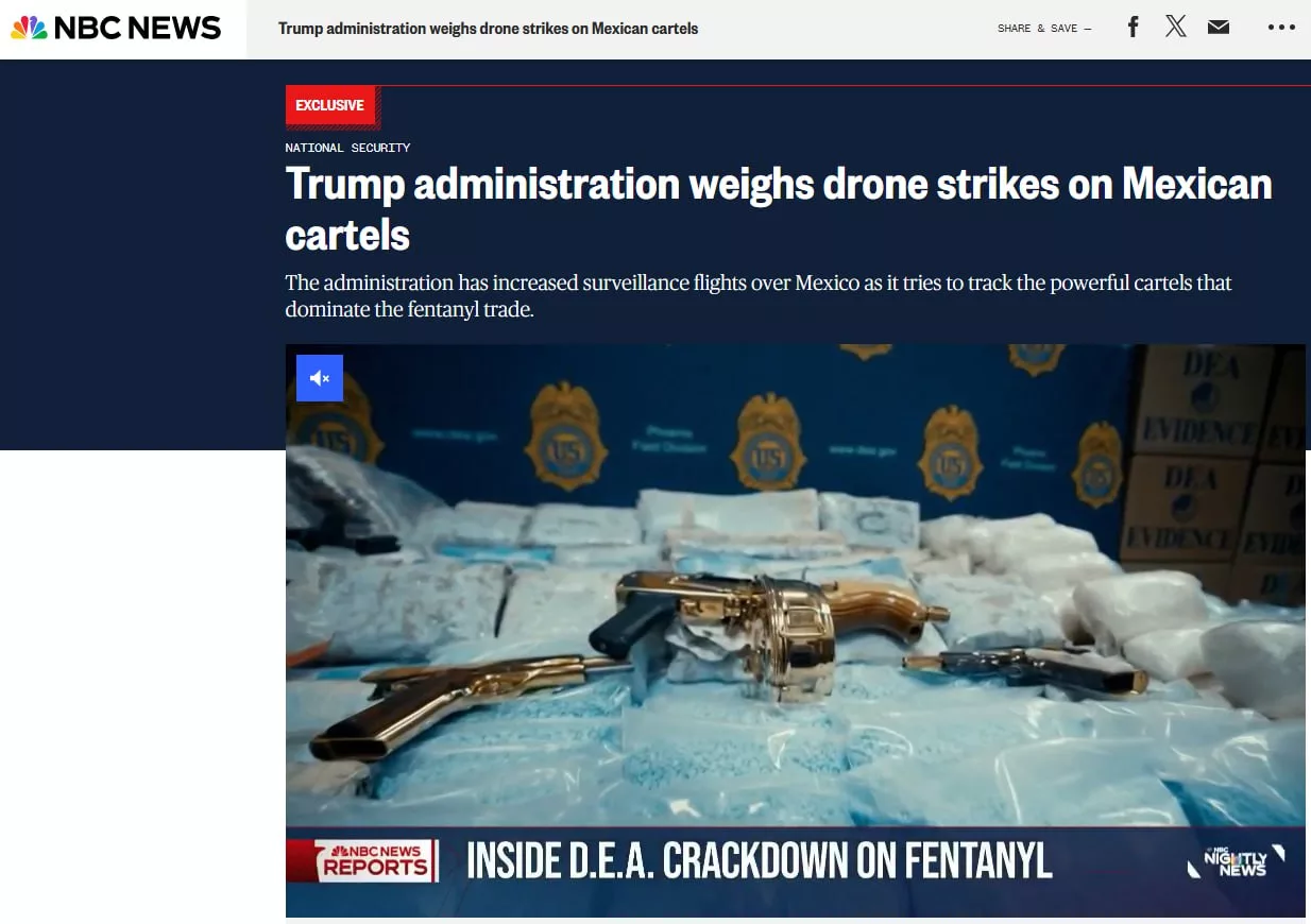 Команда президента США всерьёз обсуждает удары дронами по мексиканским наркокартелям. Об этом сообщает NBC со ссылкой на бывших и действующих военных, разведчиков и полицейских.