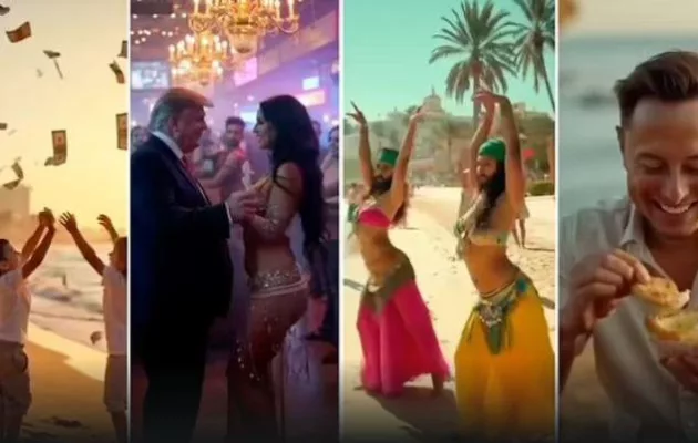 Президент США на своей странице в Truth Social выложил 35-секундное видео, сгенерированное нейросетью, где разрушенный анклав превращается в гламурный рай для туристов.