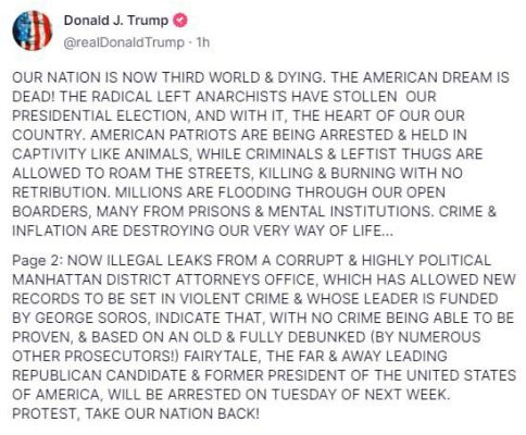 Прокуратура Манхэттена намерена предъявить ему ряд уголовных обвинений. В этом политическом акте Трамп обвинил демократическую партию США и Джона Байдена.