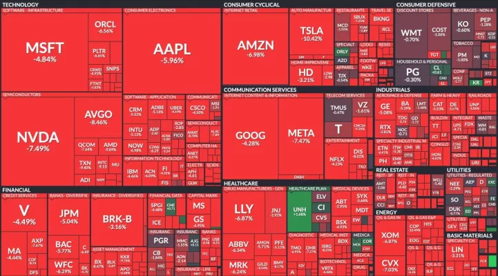 - после заморозки тарифов для ряда стран индекс S&P 500 показал самый большой дневной прирост с 2008 года. А уже сегодня рухнул более чем на 4%, сообщает NYT;