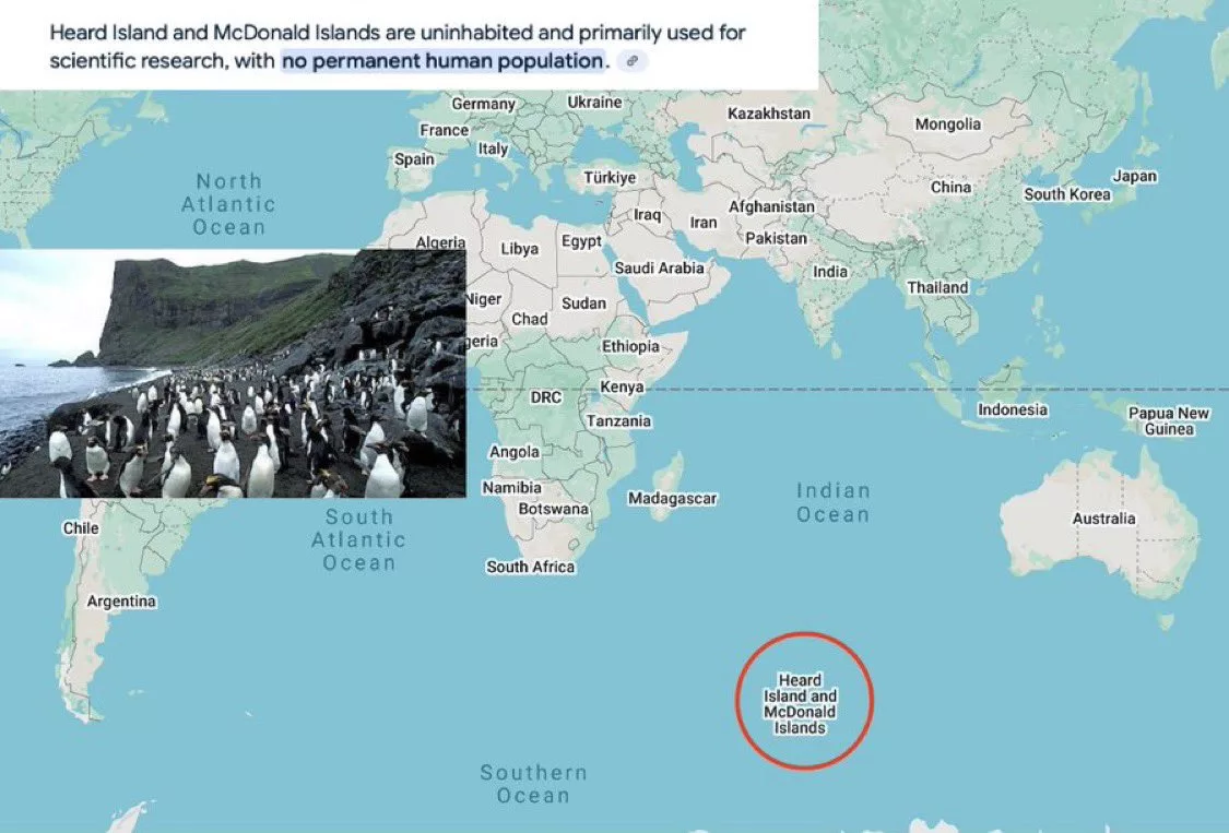 В соцсетях высмеяли один из пунктов перечня стран, на которые президент США наложил пошлины. Под 10-процентные тарифы попали необитаемые острова Херд и Макдональд.