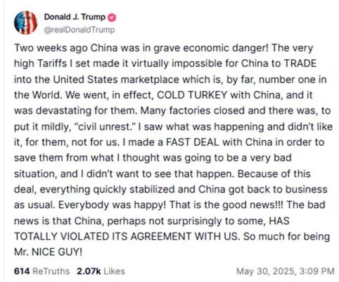 Американский лидер заявил, что пошел на сделку с Китаем, чтобы «спасти» его, но Пекин нарушил договоренности.