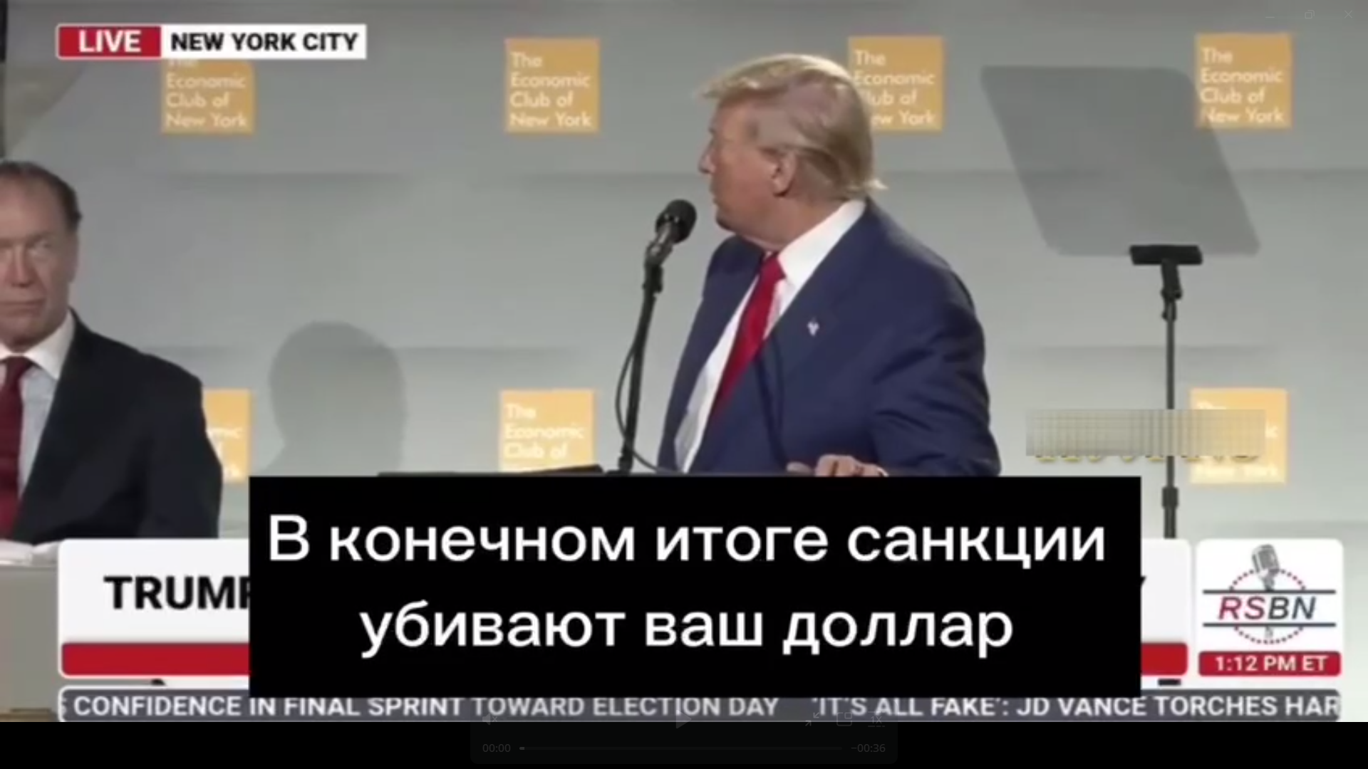 «Вы теряете Иран, вы теряете Россию. Китай пытается сделать свою валюту доминирующей валютой. Существует так много конфликтов со всеми этими странами, что вы потеряете господство доллара. Я хочу использовать санкции как можно реже», заявил Трамп.