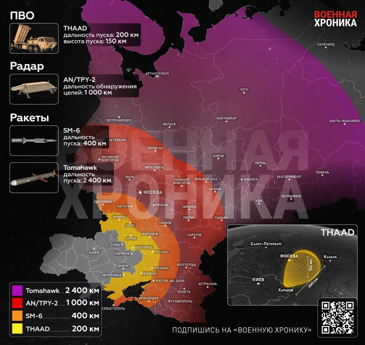 ▪️Ракеты «Томагавк» с наземной пусковой и дальностью пуска 2,4 тыс. км. Такие комплексы на вооружении американской армии уже есть. Речь идёт о системе Mid-Range Capability (MRC), или Typhon. Размещение таких ракет в Харькове позволит доставать практически до середины России, включая южный Урал.