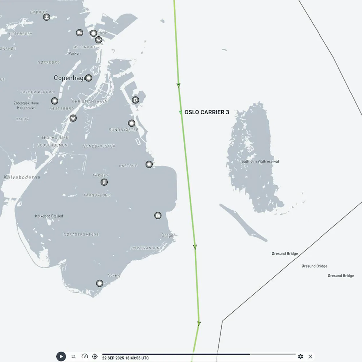 ▪️Норвежское грузовое судно OSLO CARRIER 3 находилось в 7 км от аэропорта Копенгагена, когда дроны были в воздухе. Экипаж судна российский, а владелец имеет офисы в Калининграде.