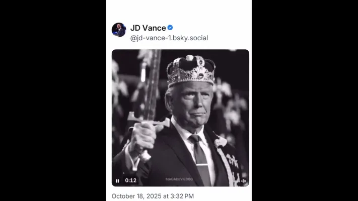 В разгар крупнейших протестов No Kings («Нет королям») вице-президент США Джей Ди Вэнс опубликовал сгенерированный ИИ ролик, где Дональд Трамп изображён в образе монарха.
