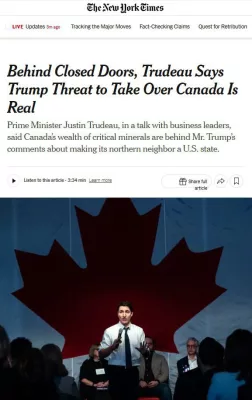 - Канадский политик выступил накануне на собрании руководителей компаний и бизнес-лидеров в Торонто. Он ясно дал понять, что не считает заявления Трампа шуткой и считает, что аннексия — это то, к чему Канада должна относиться как к серьезной угрозе:
