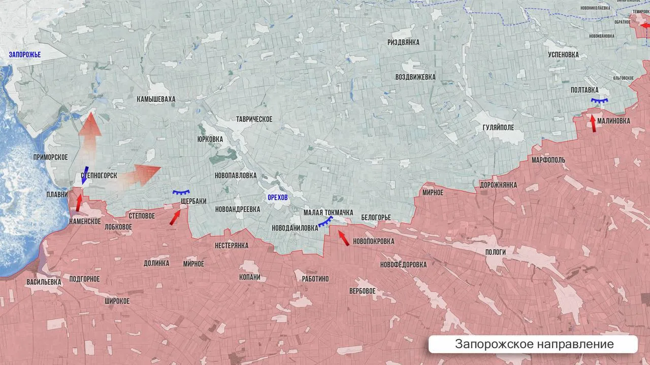 - На Запорожском участке продолжаются бои в южном микрорайоне Степногорска. На южной окраине Приморского ВС РФ продвигаются через сады. Дронами атакуют укрепрайоны в самом Приморском, в частности, в здании ж/д станции, а также наносят удары на дорогах у Запорожья. Позиционные бои продолжаются на Ореховском участке в районе Новоданиловки и Малой Токмачки.