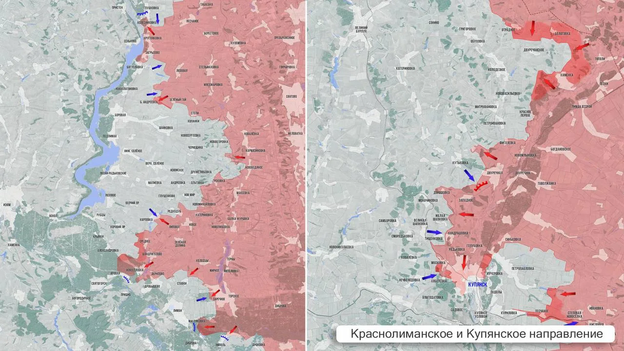 - На Краснолиманском фронте ВС РФ продвигаются к Красному Лиману с севера, а также обходят город южнее, продвигаясь в направлении Северского Донца. Ррасширяют зону контроля в районе Ставков и Новосёловки.