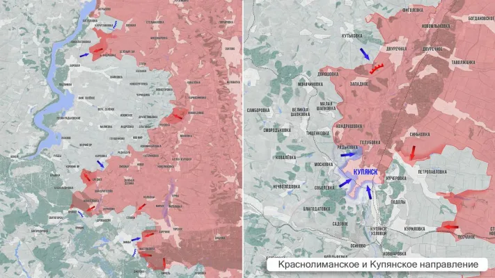 - На Краснолиманском направлении наши захватили ферму на северной окраине Красного Лимана. ВС РФ пробиваются в лесах южнее Александровки, и на запад от Грековки.