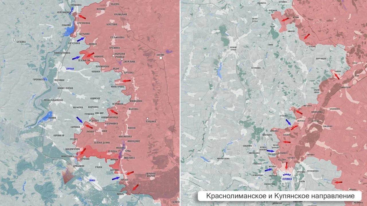 - На Краснолиманском участке бои в районе Новосёловки и Дробышево. Противник контратакует в районе Заречного, но наши войска продвигаются вперёд. По оперативным данным, боестолкновения идут в районе перекрёстка у Ставков южнее Колодезей. Также продолжаются бои в районе Мирного.