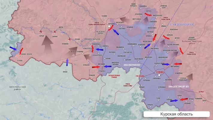 ▪️Ситуация в приграничье остается стабильно тяжелой и практически не меняется. ВСУ имеют пока незадействованные резервы внутри зоны вторжения. Плюс, по сообщениям украинских каналов, главком ВСУ все же планирует организовать попытку наступления на Рыльск со стороны Глухова, и для этого накапливает там резервы ВСУ. Задумка Сырского может состоять в том, чтобы отрезать Рыльск по реке Сейм. Цель такой операции может быть лишь в расширении плацдарм внутри