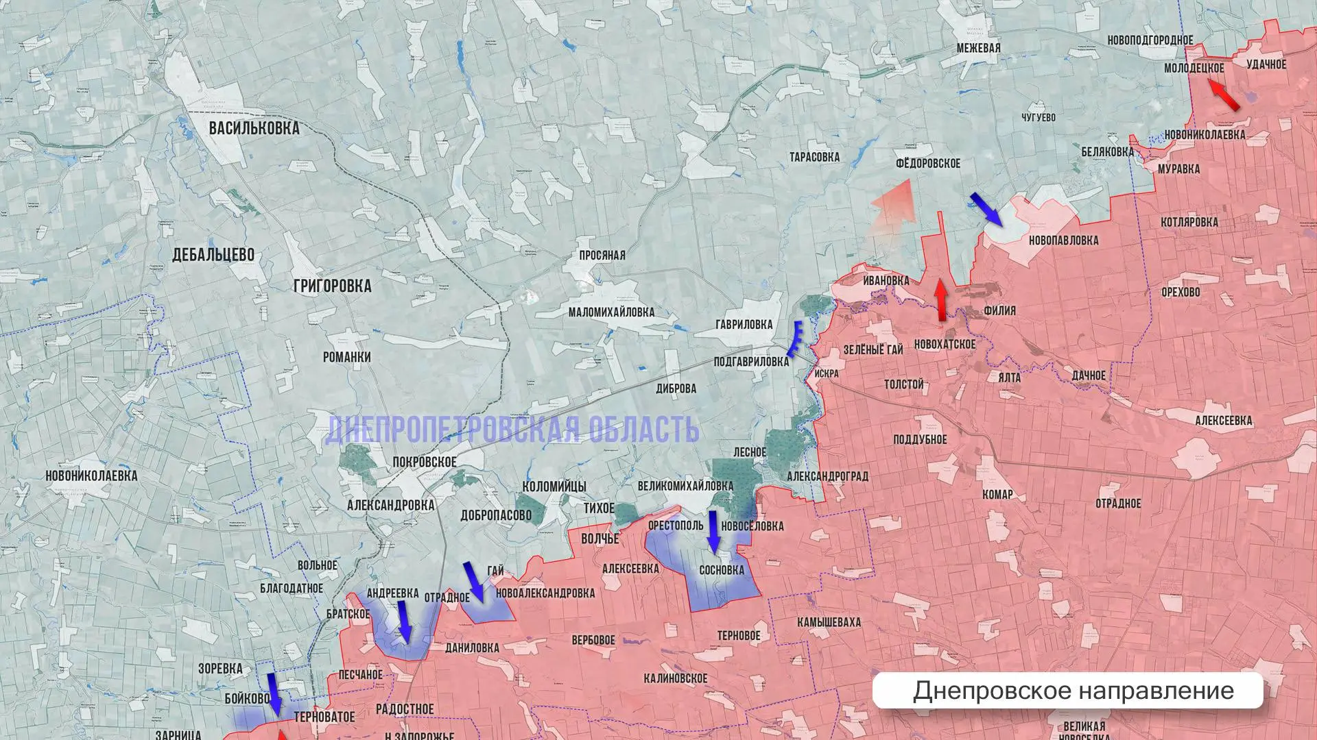 - На Днепровском направлении преимущественно идут позиционные бои. ВС РФ стараются продвинуться в сторону Лесного, противник на этом участке контратакует.