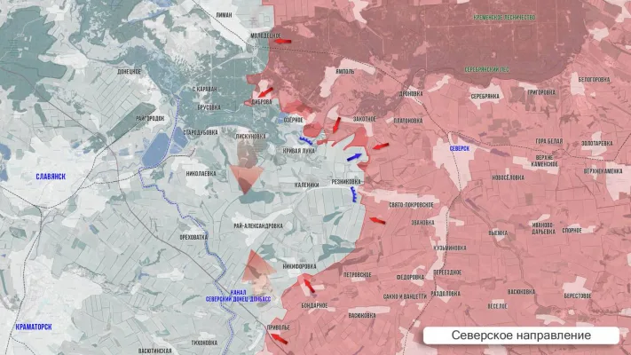 - На Северском участке бои на рубеже Никифоровка — Фёдоровка Вторая и севернее и южнее Резниковки. ВСУ периодически предпринимают попытки забросить ДРГ в район Свято-Покровского. Южнее Закотного ВС РФ заняли позиции в нескольких лесополках и ведут бои на подступах к Кривой Луке.