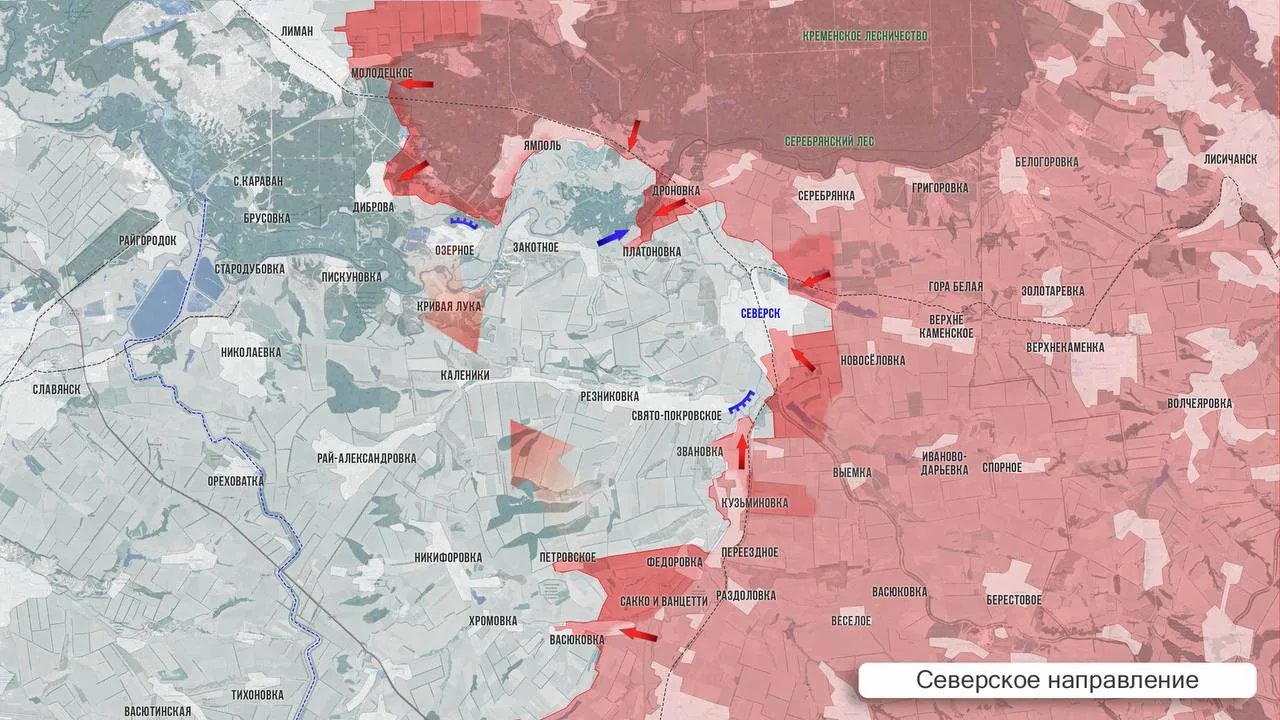 - На Северском участке есть тактические успехи западнее Васюковки, где ВС РФ продвигаются в сторону Никифоровки. В Северске наши войска зачищают квартал за кварталом в восточной части города. Южнее Ямполя наши бойцы зачистили лесной массив восточнее с. Диброва и начинают его штурм с северо-востока.