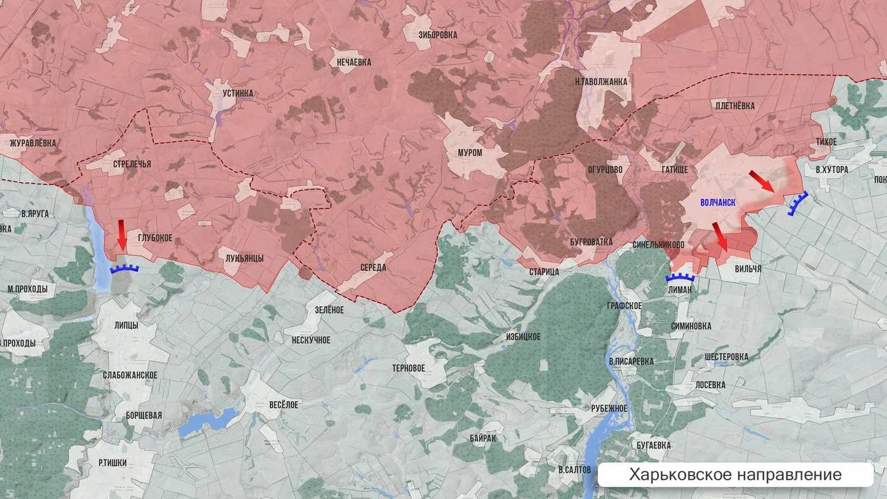 - На Харьковском фронте МО РФ сообщило об освобождении Волчанска. Бои за этот город продолжались с мая 2024 года. Идут бои за Лиман и Вильчу, половина этого посёлка перешла под контроль ВС РФ.