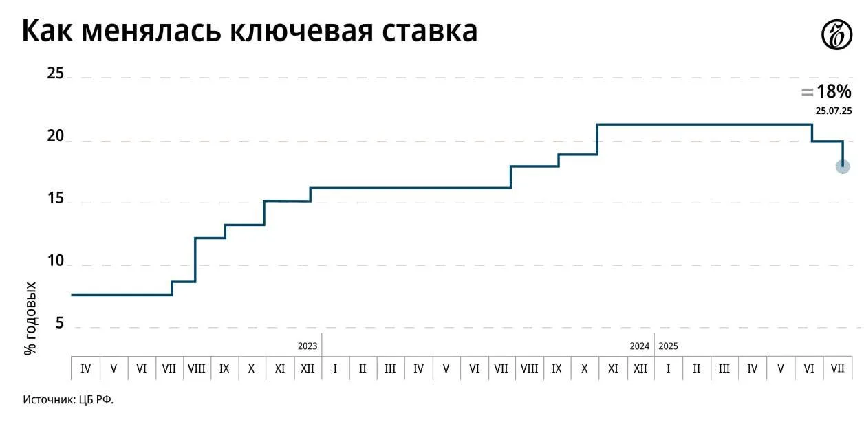 Банк России сегодня понизил ключевую ставку с 20% до 18%. Это уже второе снижение подряд – предыдущее произошло в июне.