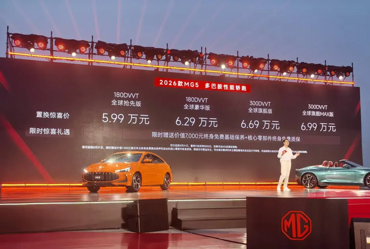 Это за новый MG5 в максимальной комплектации — 181 лс, автомат (робот), 6,8 сек до 100, камеры 360, 2 экрана, встроенный ИИ, эмбиент подсветка, акустика с 8 динамиками, электрорегулировка кресел, эйрбэги, люк, диски 17’ и кузов высокой жёсткости с большим % высокопрочной стали.