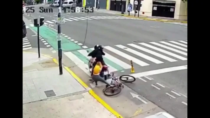 Инцидент произошел в районе Палермо Буэнос-Айреса, когда 33-летняя девушка каталась на велосипеде. В какой-то момент двое преступников на мотоцикле попытались вырвать у нее смартфон.