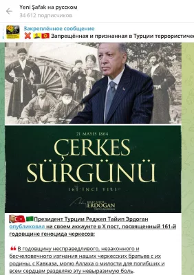 - 21 мая русскоязычные турецкие ресурсы, включая Yeni Şafak и TRT на русском языке, со ссылкой на Эрдогана опубликовали его обращение касательно депортации черкесов в 1864 году: