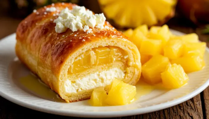 - Добавление ананасов. В творожную массу добавьте нарезанные ананасы и немного ананасового сока из банки для аромата и легкой кислинки.