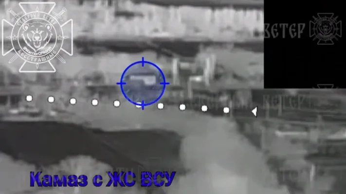 Украинский грузовой автомобиль ночью вез личный состав на позиции в районе Охримовки, но вычислен воздушной разведкой. Ударами дронов спецназа ФСБ РФ вражеский транспорт сожжен, выжившие добиты ударами FPV-дронов.