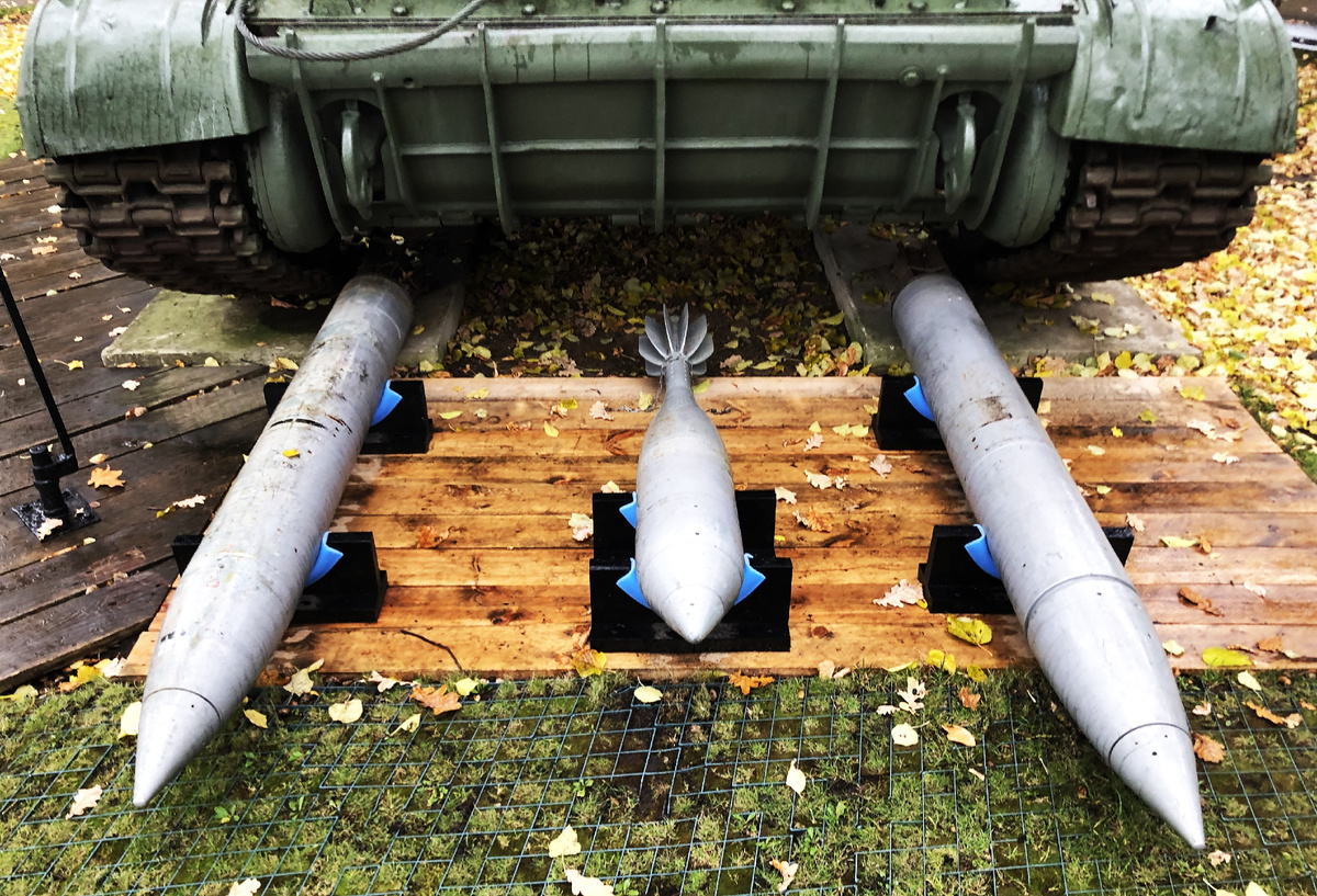 240мм миномет 2Б8 крепится рамой опорной плиты к балкам кормового листа корпуса. В походном положении он фиксируется горизонтально, на крыше корпуса ; в боевом- упирается в грунт. Миномет казнозарядный, имеет гладкостенный ствол. Казенник с затвором передает энергию при выстреле на сварно-литую опорную плиту мембранного типа.