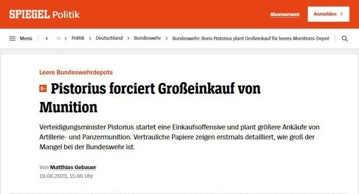 ❗️Хотя по требованиям НАТО в запасах бундесвера до 2031 года должно быть накоплено 230 тысяч единиц, пишет Spiegel.