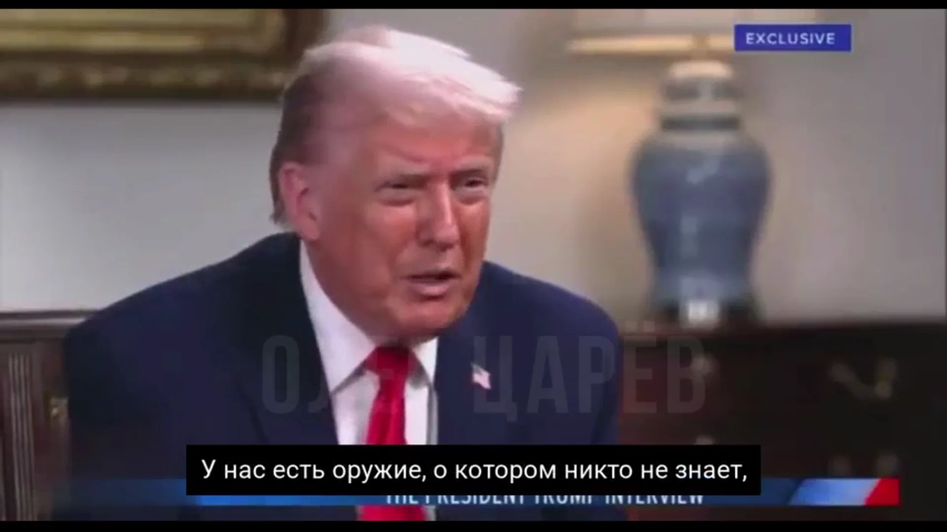 Трамп: Да, это… я не хочу об этом (говорить): пусть это будет у нас, а не у других. У нас есть оружие, о котором никто даже не знает. И я скажу так: наверное, хорошо, что мы не говорим об этом, но у нас есть кое-что по-настоящему невероятное. Та атака была впечатляющей. Не забывайте: тот дом находился посреди укреплённой территории — фактически внутри форта, на военной базе.