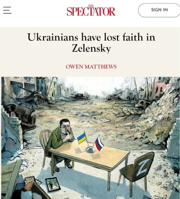 «Путин разрушает Украину извне, а Зеленский — изнутри, подрывая волю к сопротивлению и моральный дух», — заявляет бывший министр украинского правительства, некогда горячо поддерживавший Зеленского. Это вообще заявлено как тенденция: уровень доверия к Зеленскому падает даже среди его бывших сторонников, тогда как военное руководство набирает популярность.