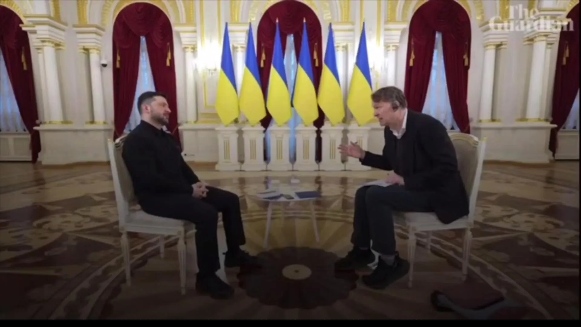 Во время беседы бывшего комика с британским изданием в Мариинском дворце в Киеве дважды отключалось электричество.