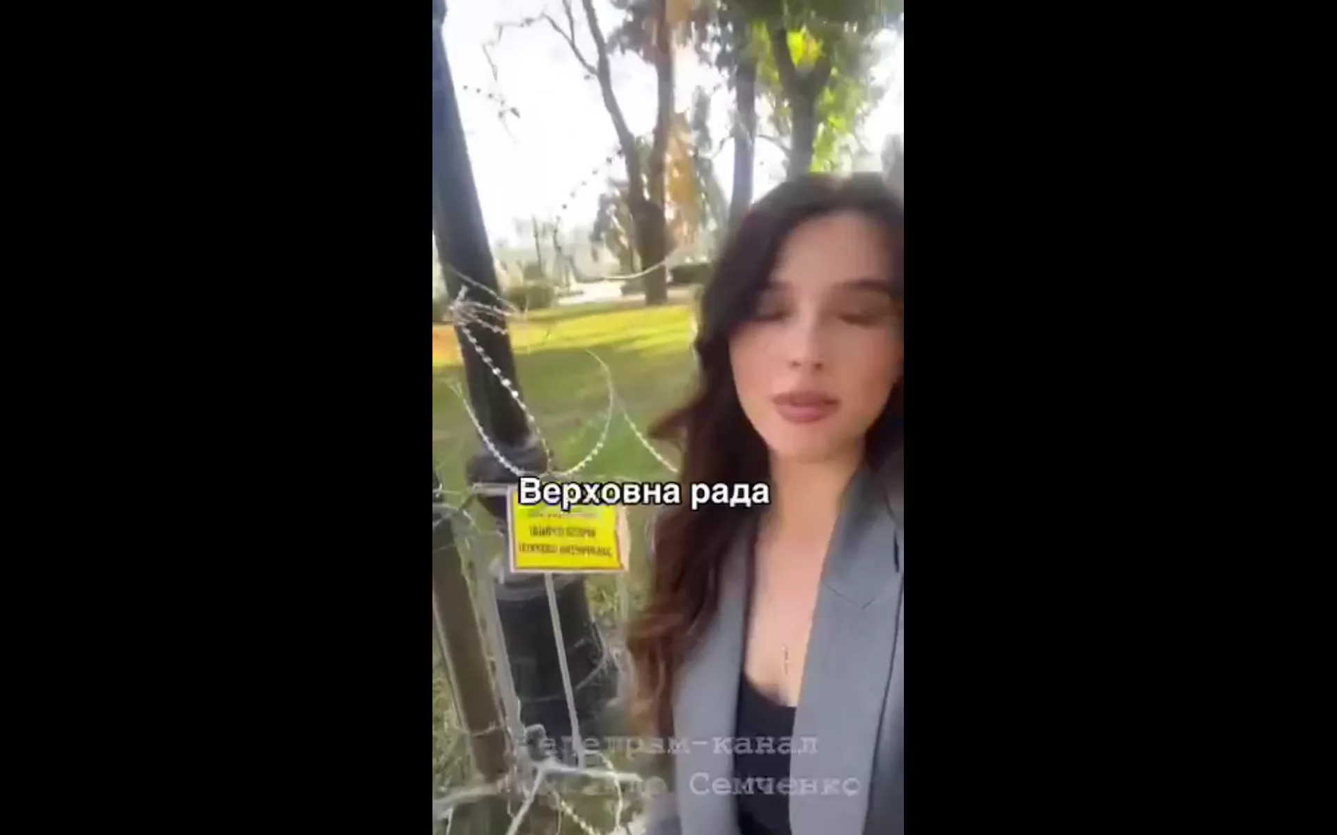 Жиночка стоит на фоне колючей проволоки около Верховной Рады и настойчиво спрашивает: