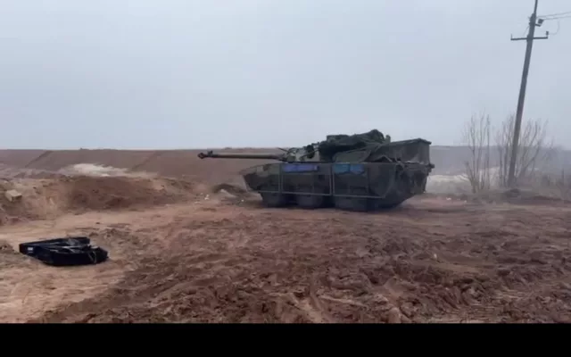 Как можно заметить, данные легкобронированные машины, несущие внутри себя укладку из 105-мм выстрелов, стали дополнительно бронироваться антидроновыми решетками и складными козырьками.