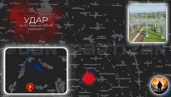 Согласно полученным данным ночью 02 апреля 2024 года был нанесён удар по подстанции «Кварцит» 330/155/15 кВ в Кировоградской области.