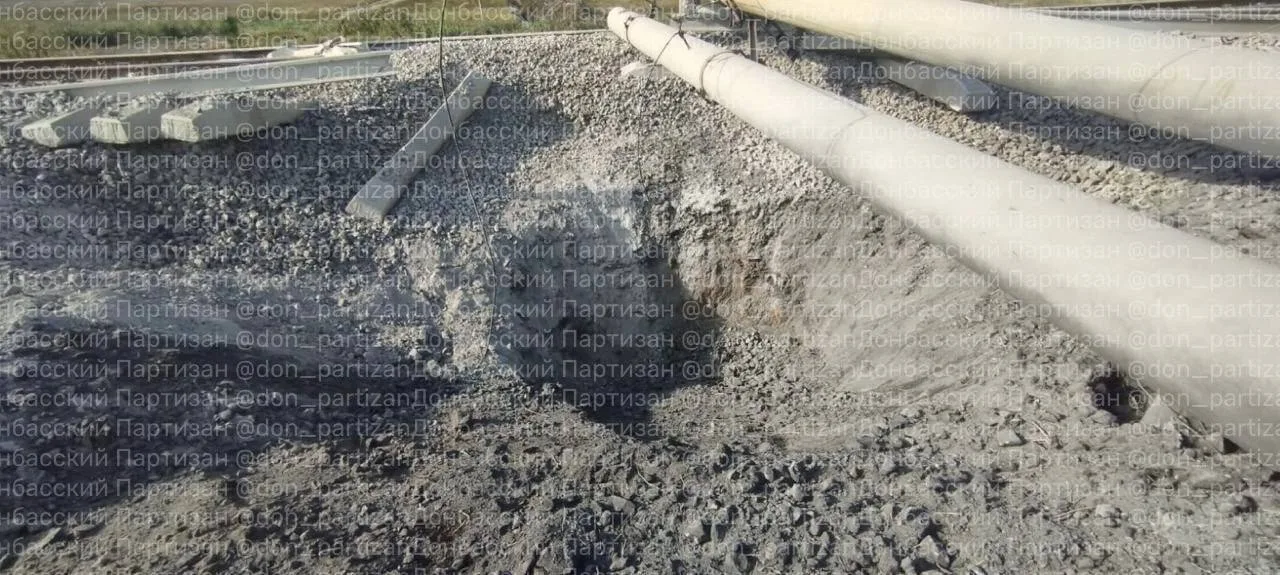 Первая серия попаданий пришлась непосредственно в железнодорожное полотно, вызвав разрушение участка пути и деформацию рельсошпальной решётки. Вторая точка удара зафиксирована вблизи путепровода и контактной сети. Удар сопровождался выбросом металлических осколков и частичным разрушением несущих элементов линии электроснабжения.
