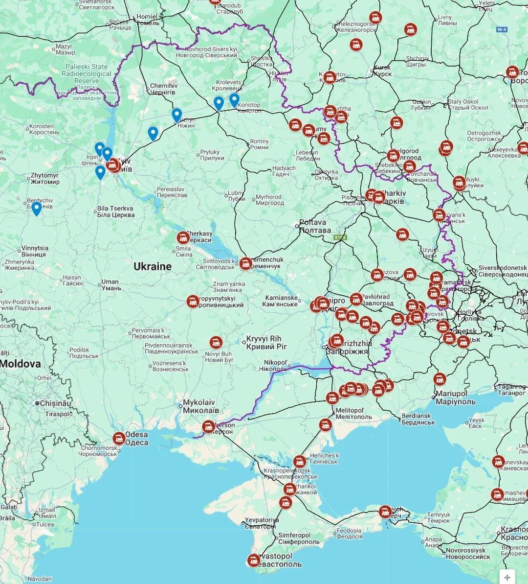 Судя по всему, поражаются узлы и ветки, ведущие на северо-восток — в сторону Сумской области (они отмечены синим).
