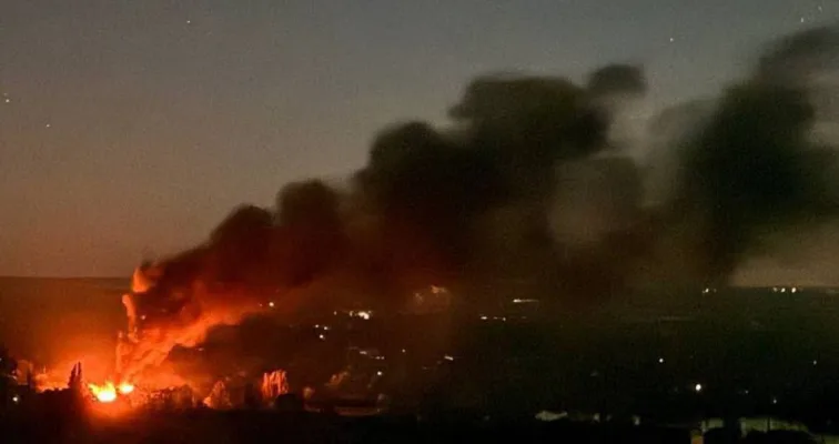 На местах отмечаются возгорания и вторичная детонация, что указывает на поражение складских или логистических объектов.