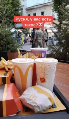 Укр пытался похвастаться в интернете МАКДОНАЛЬДСОМ, спрашивая есть ли такое в России. Однако на заднем фоне в кадр попала добровольная мобилизация, где человек скоро будет подыхать за этот самый макдональдс.