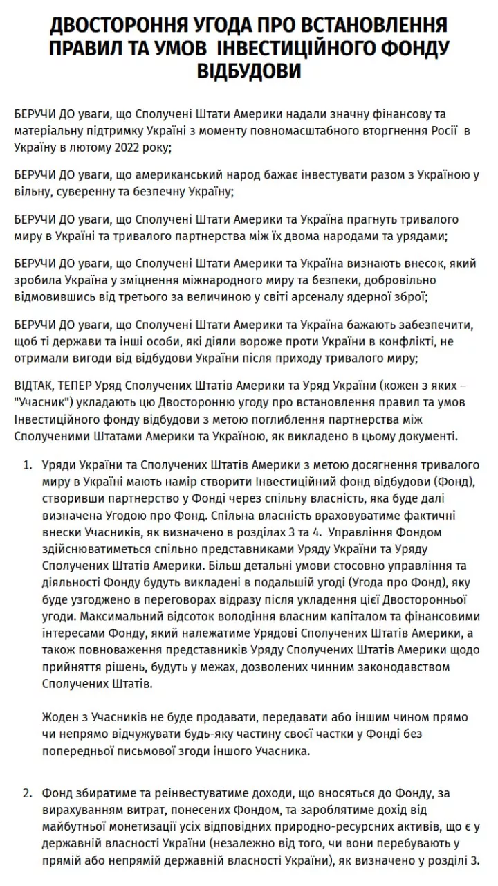 - Создается инвестиционный фонд восстановления Украины под совместным управлением США и Украины.