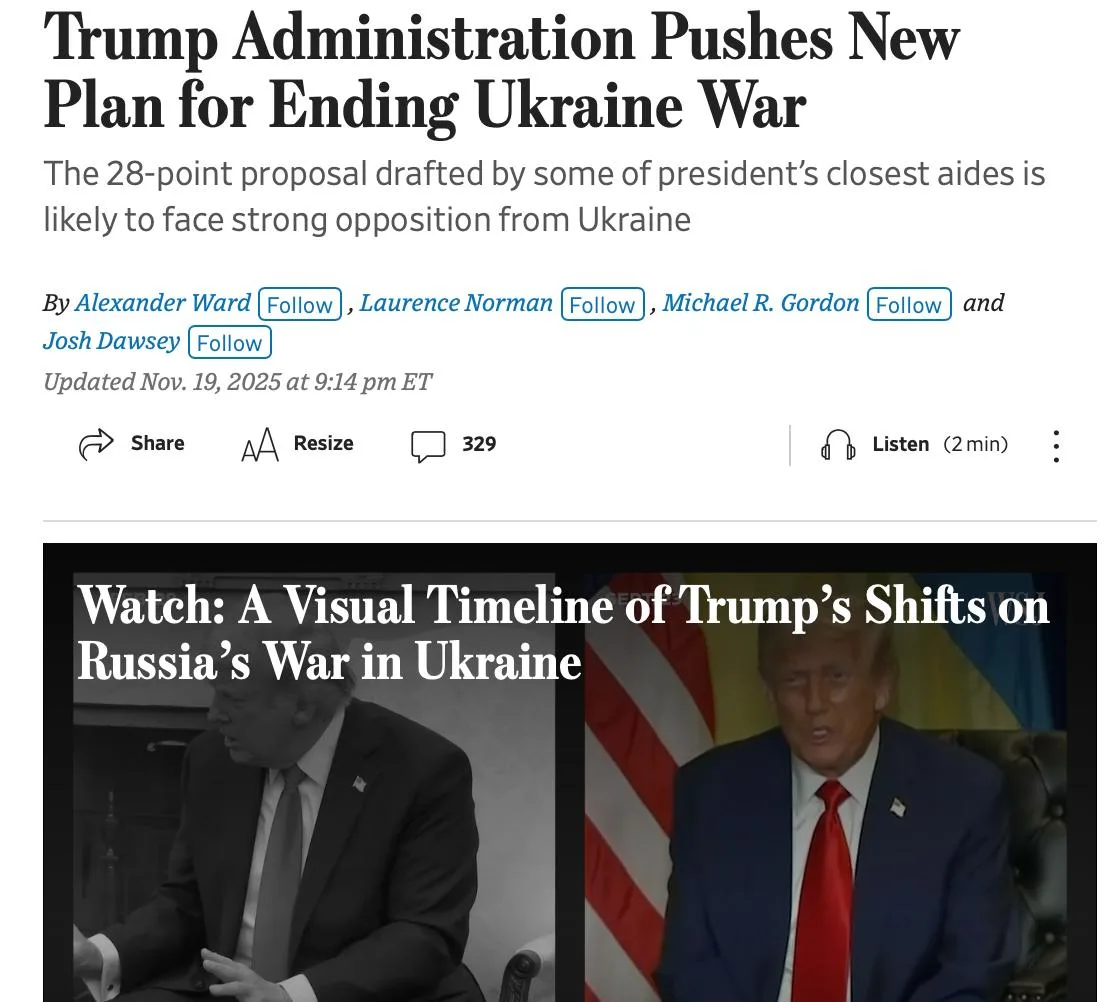 Тhe Wall Street Journal пишет, что по новому плану Украине придется согласиться на отказ от вступления в НАТО минимум на несколько лет.