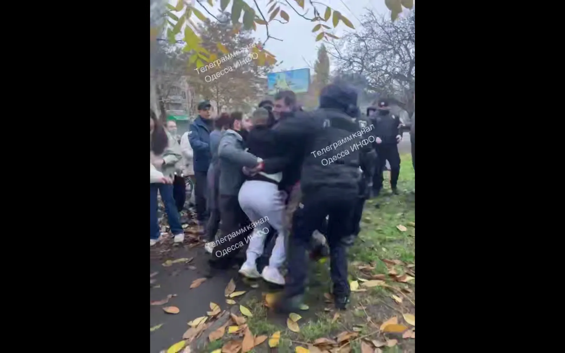 Одесса. Наряд ТЦК средь бела дня упаковал в микроавтобус мужчину. Его попытались отбить, но один из людоловов брызнул женщине в лицо из газового балончика. Насильно мобилизованного увезли.