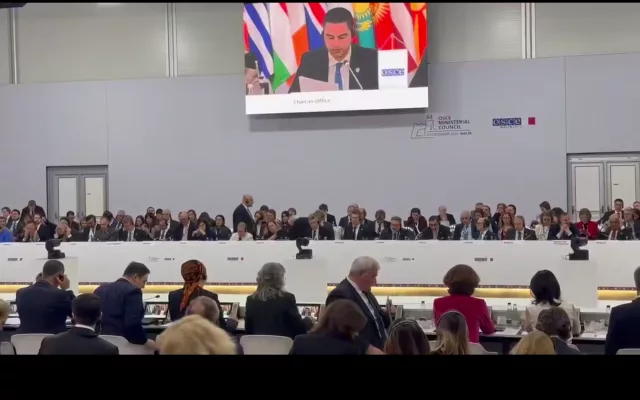 Помимо этого, во время пленарного заседания ОБСЕ он демонстративно вышел из зала перед началом выступления министра иностранных дел России Лаврова. За ним побежало пару обезьянок из стран запада.