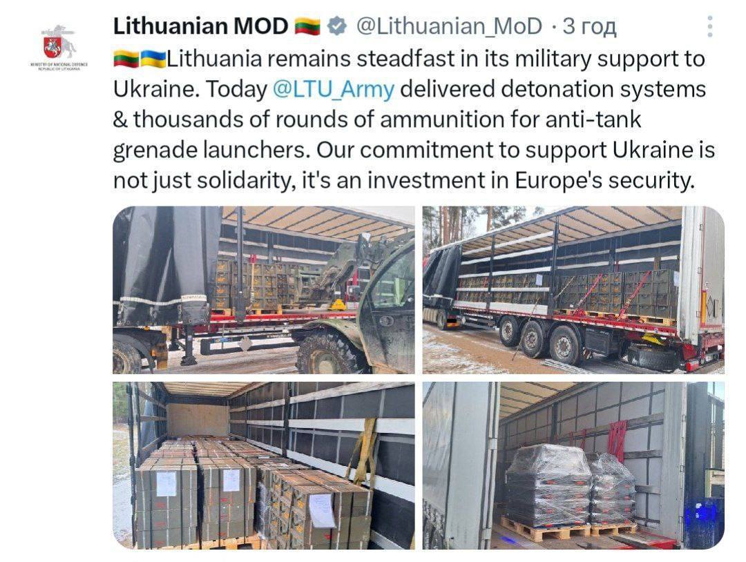 «Наше обязательство поддерживать Украину – это не просто солидарность, это инвестиция в безопасность Европы», — отметило министерство обороны Литвы